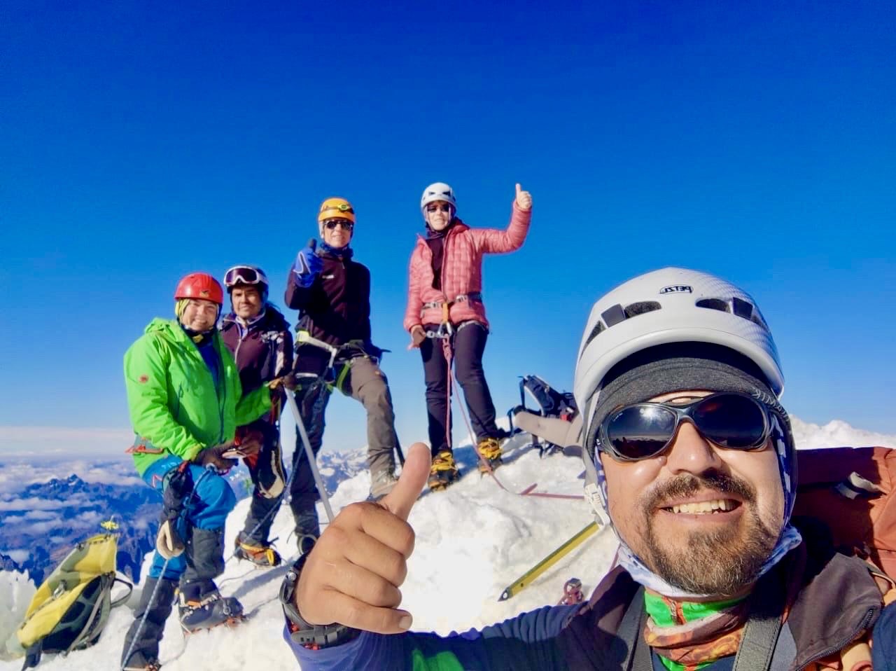 Als Bergführer hat Pedro ein weitere, ebenfalls sehr professionellere Seite gezeigt. Obwohl für die Gruppe natürlich das Erreichen der Gipfel im Focus stand, hat er es verstanden, trotz der sehr unterschiedlichen Leistungen und Fähigkeiten der Gruppenmitglieder, immer wieder dafür zu sorgen, dass alle wieder sicher zurückkommen und trotzdem die Gipfelziele erreicht werden konnten. Er hat die Gruppe so souverän geführt, teilweise separat abgesichert , Tempo und die Tourenabschnitte angepasst, dass die maximal möglichen Höhen und Gipfel für die einzelnen Personen erreicht werden konnten.