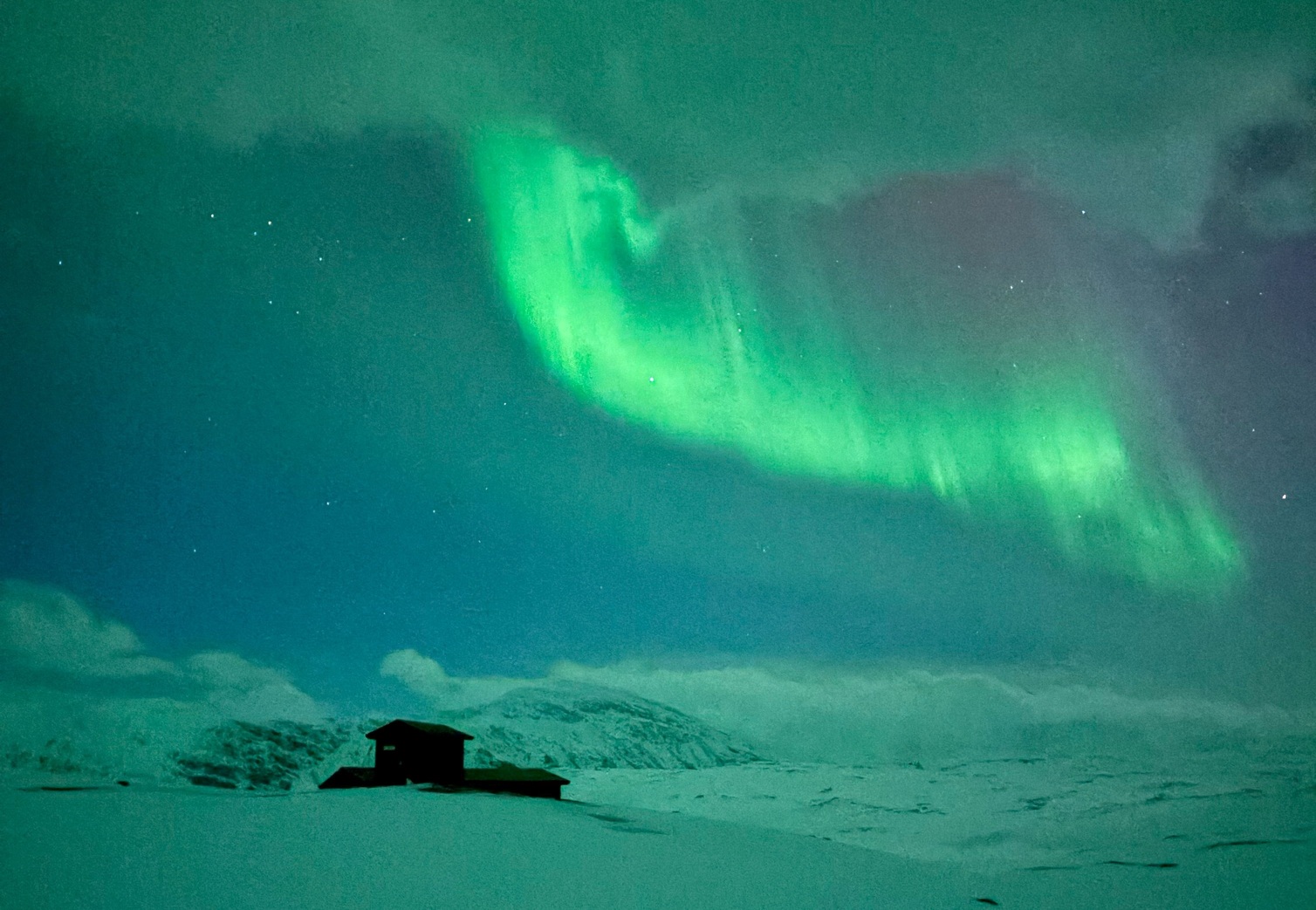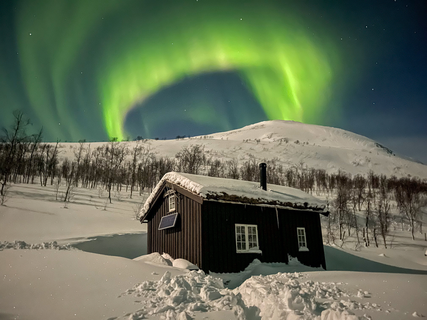 Eine Ihrer Übernachtungshütten um Mitternacht bei –25 Grad.