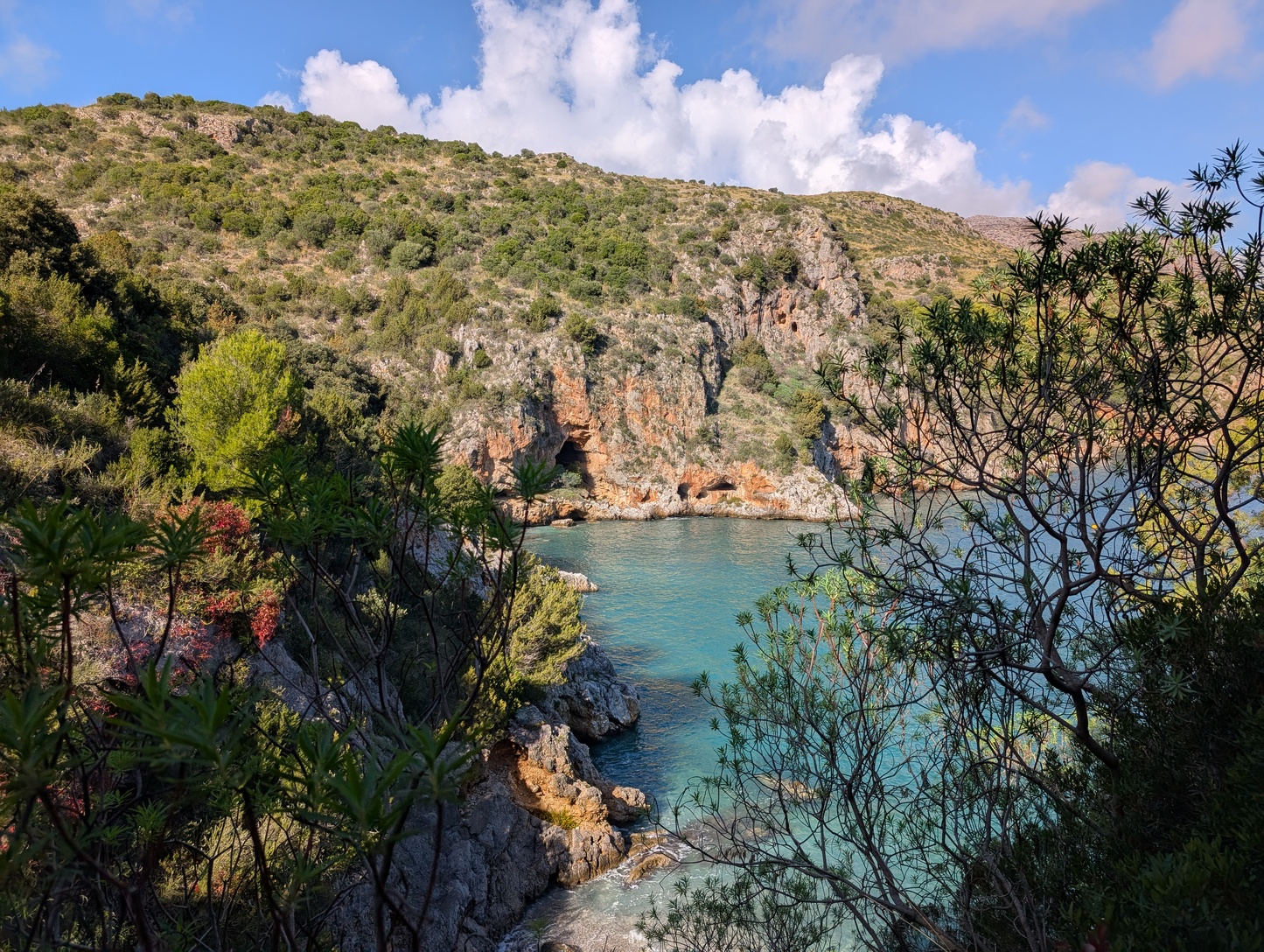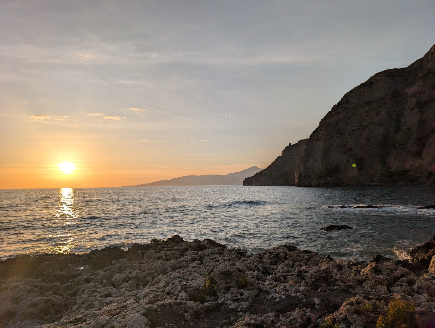Ziel unserer zwischen acht und zwölf Kilometer langen Wanderungen waren immer wieder kleine, zu dieser Jahreszeit sehr einsame Buchten und Naturhäfen in der Region. Die Haupt-Badesaison ist Ende Oktober längst vorbei, die Sommerurlauber schon lange zurück in ihrer jeweiligen Heimat und es ist bereits Ruhe in den Küstenorten eingekehrt. Somit bleibt am Kiesstrand genug Platz für unsere kleine Wandertruppe, um in Ruhe dem Rauschen der Wellen zu lauschen, unser mitgebrachtes Mittagessen zum Picknick auszubreiten oder noch ein paar süße rote Corbezzoli vom Wegesrand zu naschen. Das Mittelmeer war bis zum letzten unserer Reisetage noch immer warm genug für die eine oder andere Badeerfrischung und schwimmende Erkundung kleiner Felsenhöhlen, denn die Sonne gab an einigen Tagen ihr Bestes, brachte das türkisblaue Nass zum Glitzern und bot uns einen sagenhaften Sonnenuntergang.