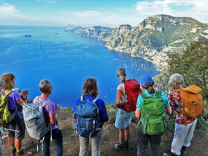 „Der Moment, der mich auf dieser Reise jedes Mal aufs Neue berührt, ist, wenn ich von den oberen Wanderpfaden auf die Amalfiküste hinabblicke – weitab vom turbulenten Getümmel der Küstenorte – wo sich tiefe Entspannung einstellt angesichts so viel schöner Weitsicht. Terrassierte Weinberge schauen auf das türkisblaue Meer, tiefe Schluchten graben sich weit ein, bunte, verschachtelte Häuser klettern die Steilküste hinauf wie in einem Wimmelbild. Der Duft wilder Kräuter, knallgelbe Zitronen, gemütlich schaukelnde Boote und Blicke auf Positano und Capri wirken wie aus einem Traum. Das endlose Panorama über Küste und Inseln lässt die Seele atmen und erfüllt mich mit tiefer Dankbarkeit, so viel Schönheit erleben zu dürfen.“